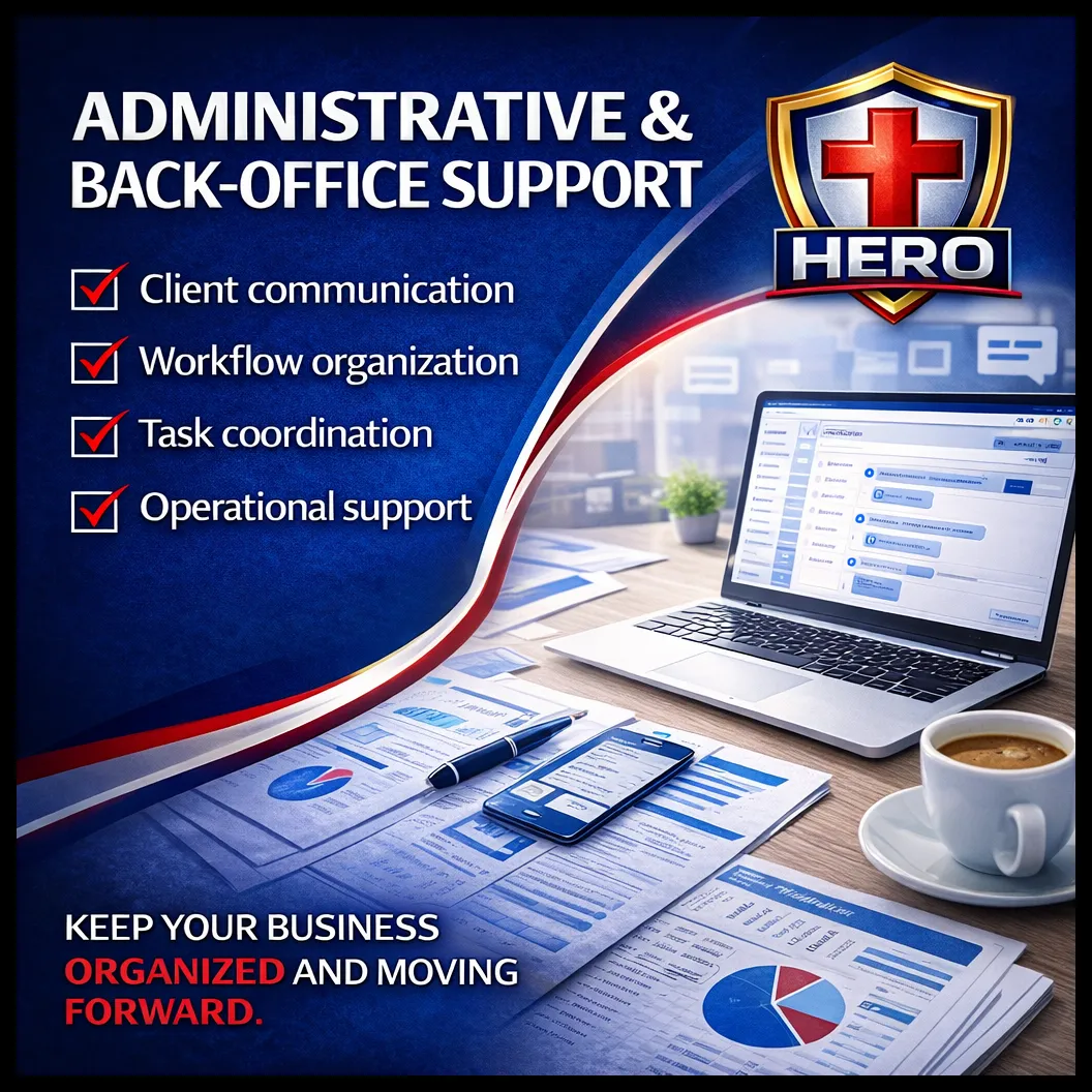 Back office support through HERO covers essential functions such as accounting, bookkeeping, and administration, helping bring structure and clarity to daily operations. These services are designed to reduce distractions, improve organization, and give business owners a clearer picture of how their business is functioning behind the scenes. With stronger internal support, entrepreneurs can focus more time on leadership, customers, and growth.